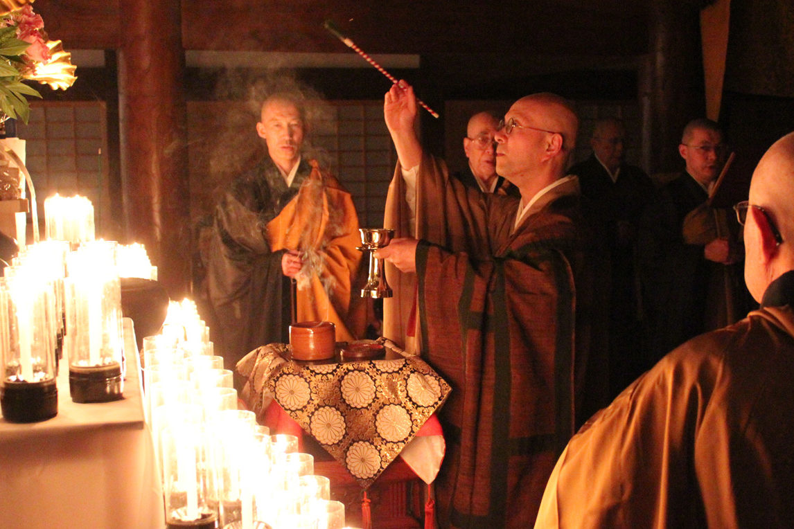 修禅寺から独鈷公園まで灯ろうを持ち、行列で歩きます。