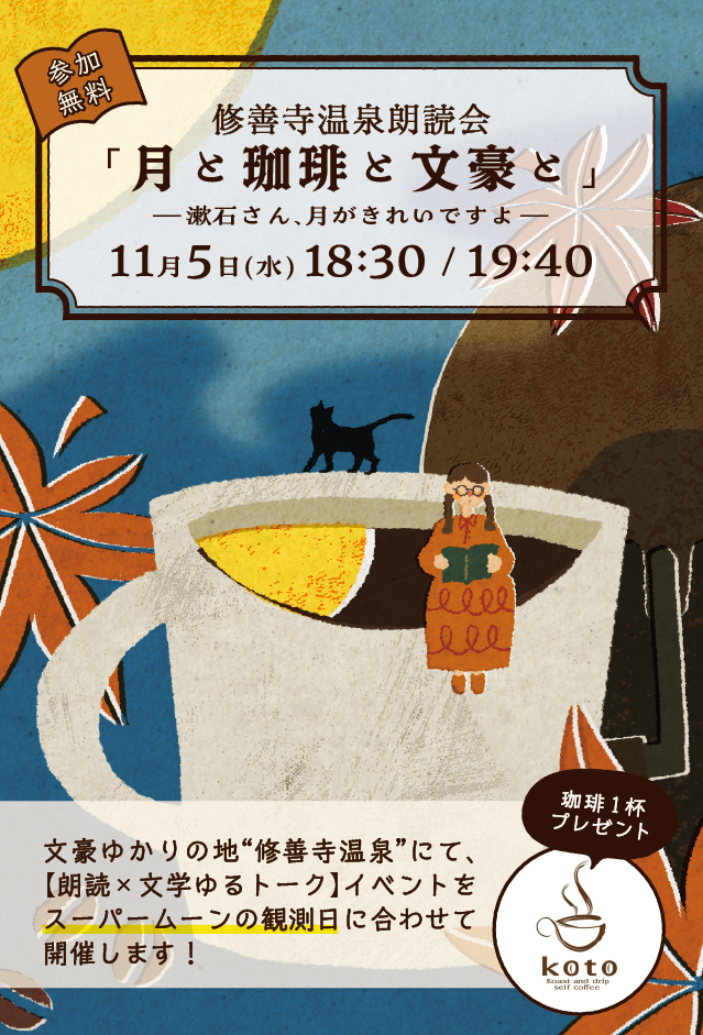 主催:修善寺温泉朗読会 ”コト”を売るコーヒー屋さん koto /図書委員コンさぶろう地域おこし協力隊・飯島/修善寺燕舎
